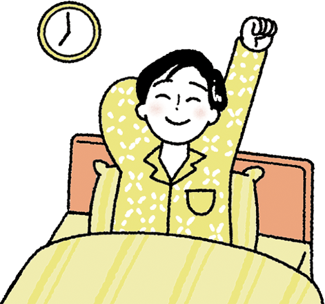 体が必要とする睡眠時間以上に眠ろうとして、布団の中で長く過ごすと、かえって寝つきに時間がかかったり、中途覚醒が増えて睡眠の質が低下してしまうので、眠くなってから布団に入るようにしましょう。