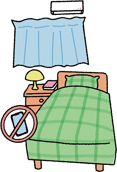 寝室の環境づくり寝室の光・温度・音に気をつけ、スマホは持ち込まない