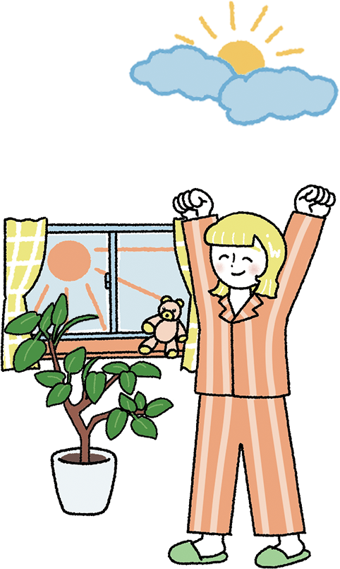 目覚めたらカーテンを開け、朝日を浴びましょう。
